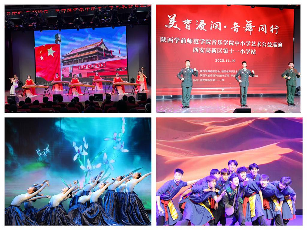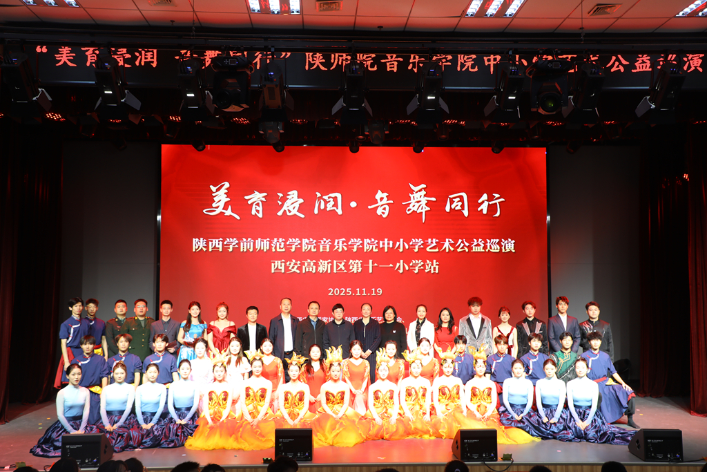 近日,由陕西省舞蹈家协会、陕西省声乐艺术协会、陕西省少年儿童文化研究会主办,陕西学前师范学院承办的“美育浸润·音舞同行”中小学艺术公益巡演活动在西安高新区第十一小学举办。此次活动将高质量艺术表演与思政教育深度融合,打造了一场兼具审美与精神滋养的“行走的思政课堂”。
