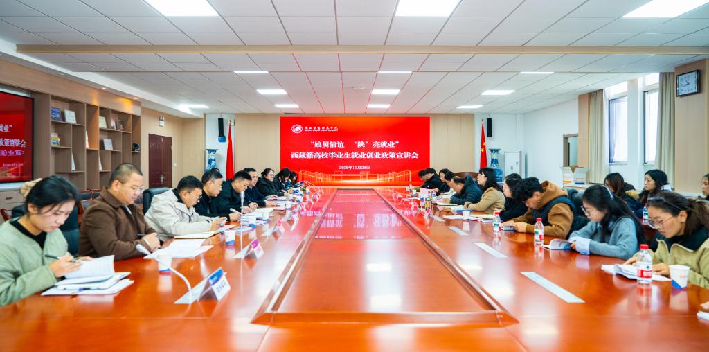 11月28日,西藏籍高校毕业生就业创业政策宣讲会在我校顺利召开。西藏自治区就业服务中心区外就业联络总站站长陈志田、西藏自治区人民政府驻西安办事处服务保障处处长秦林海、西安办事处经济文化人才交流中心副主任陈华、西安办事处陕西离退休人员服务管理中心党委委员、副主任弓胜军、西安办事处服务保障处四级调研员史凯、阿里地区驻陕西就业联络站站长王晓芳、学校党委副书记唐宏出席会议。招生就业处、团委、文学院、马克思主义学院等相关部门负责人、已在陕就业西藏籍高校优秀生代表、我校19名西藏籍学生参加了会议。