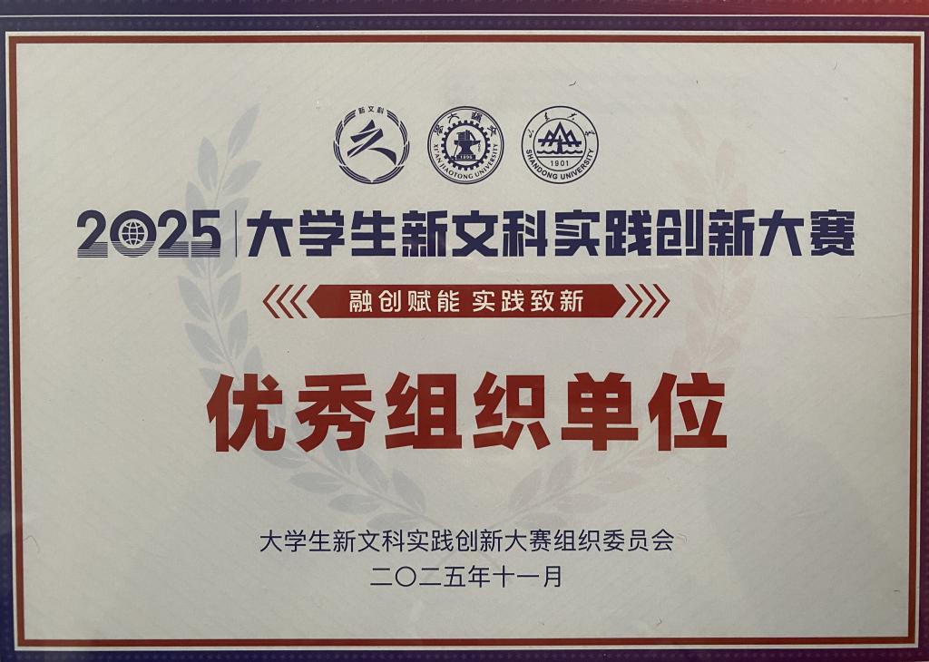2025大学生新文科实践创新大赛获奖名单近日公布,学校组织8支队伍参赛,3支晋级国赛现场赛,最终斩获银奖3项、铜奖3项、优秀奖2项,学校获得比赛“优秀组织单位”荣誉称号,获奖数量和质量位居省内同类院校前列。