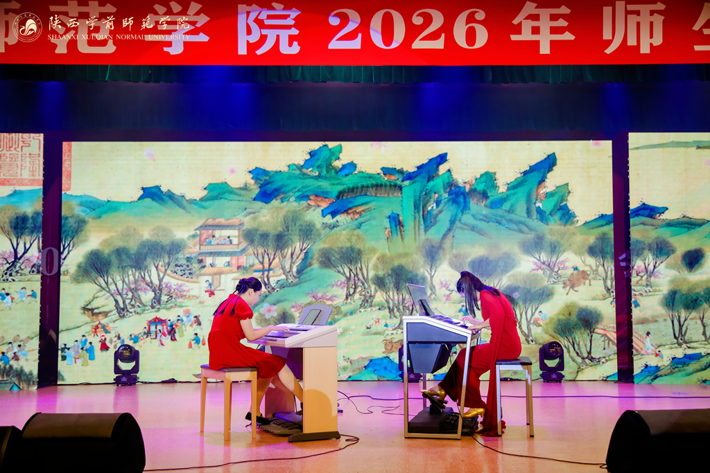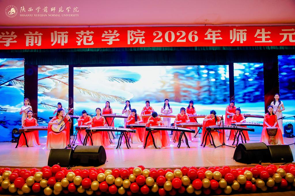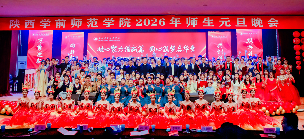 骏马奋蹄开锦绣,师生歌舞启新程。2025年12月30日晚,陕西学前师范学院2026年元旦师生文艺晚会在长安校区大学生活动中心隆重举行。学校党政领导与师生代表欢聚一堂,共赏精彩演出,喜迎新年。