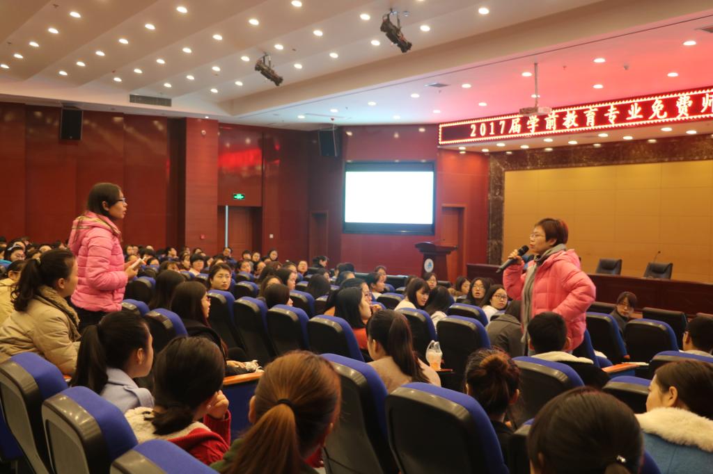 2016年11月13日上午9点,由招生就业处与学前教育系联合举办的2017届学前教育专业免费师范生就业政策宣讲会在我校图书馆报告厅召开。2017届全体免费师范毕业生参加了此次宣讲会。