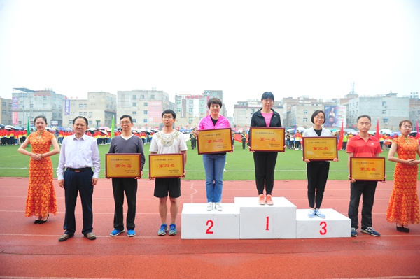 工会主席赵新峰宣读运动会教工组比赛成绩