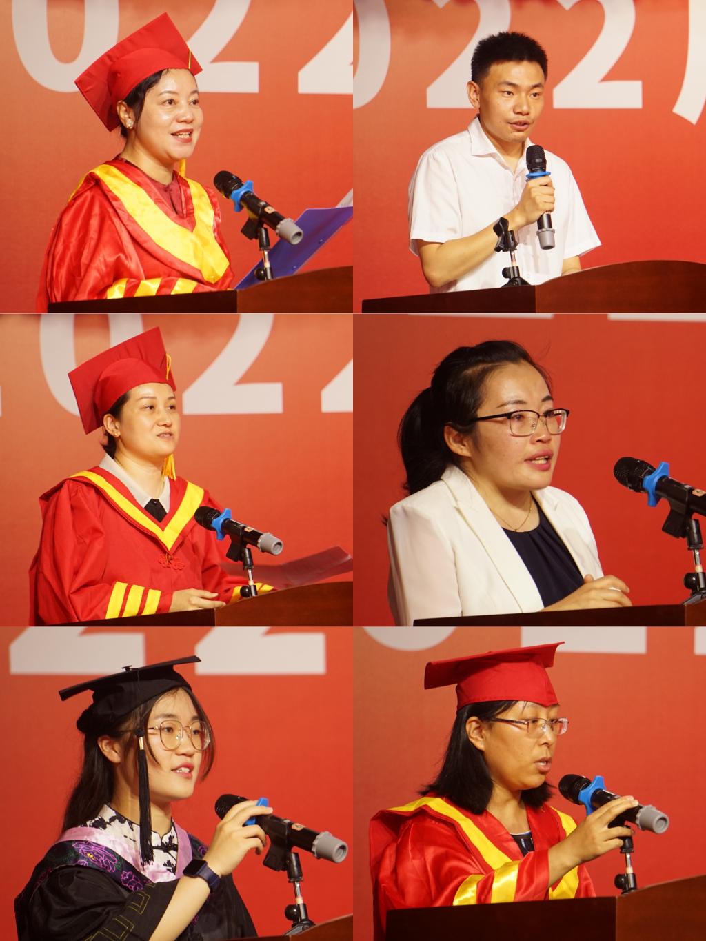 学前心理与管理系主任唐海朋作为教师代表发言,祝贺同学们顺利完成大学阶段的学习任务,顺利毕业,同学们要心怀敬畏和感恩,肩负起更多的责任。2018级卓越班董飘扬同学作为毕业生代表发言,表达了对母校的不舍和眷恋,祝福同学们开启人生新篇章。我院优秀校友2012届毕业生韩婵通过一段段感人的故事,讲述了自己毕业后的十年之旅,鼓励学弟学妹们要坚守为幼教事业奉献青春的初心,不怕风雨,砥砺前行,在平凡的岗位上发光发亮。