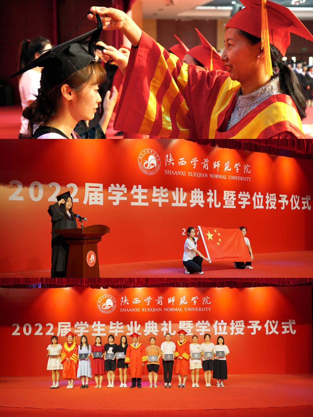 幼儿教育学院副院长范铭、张亚妮分别宣读了《关于准予朱梦夕等362名学生毕业的决定》、《关于授予朱梦夕等362名本科毕业生学士学位的决定》,与会领导为毕业生代表赠送毕业留念礼物----一枚刻有院徽和院训的姓名印章,同时颁发了毕业证书。2018级优秀毕业生张明珠同学带领现场毕业生面向国旗庄严宣誓:用智慧和才华肩负起民族复兴的使命;用青春和热血承担起国家富强的责任。今天我以陕师院为骄傲,明天陕师院以我为自豪......毕业班辅导员李通老师为同学们送上了真挚的祝福,并做了离校前的最后叮咛。