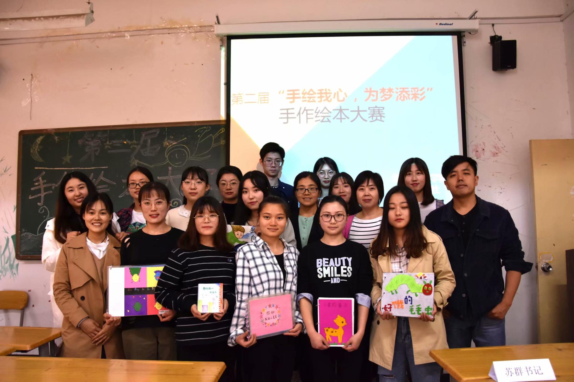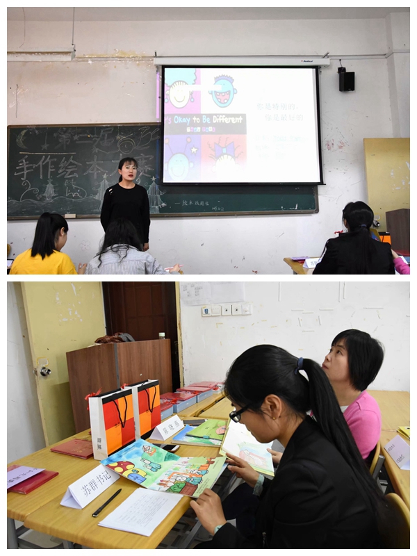 为提升学前教育专业学生的专业技能,展示学生的绘画、手工技巧,幼儿教育学院绘本戏剧社第二届“手绘我心,为梦添彩”手作绘本大赛决赛于5月24日在3教415教室拉开帷幕。本次大赛历时一个月,面向全校热爱绘本、喜欢绘本创作的学生,共收集手绘作品二十余册,经前期的初赛,共选出12本精美的绘本参加决赛。本次大赛特别邀请幼儿教育学院陈晓艳、杜艺垚、侯佳三位专业老师担任嘉宾评委。